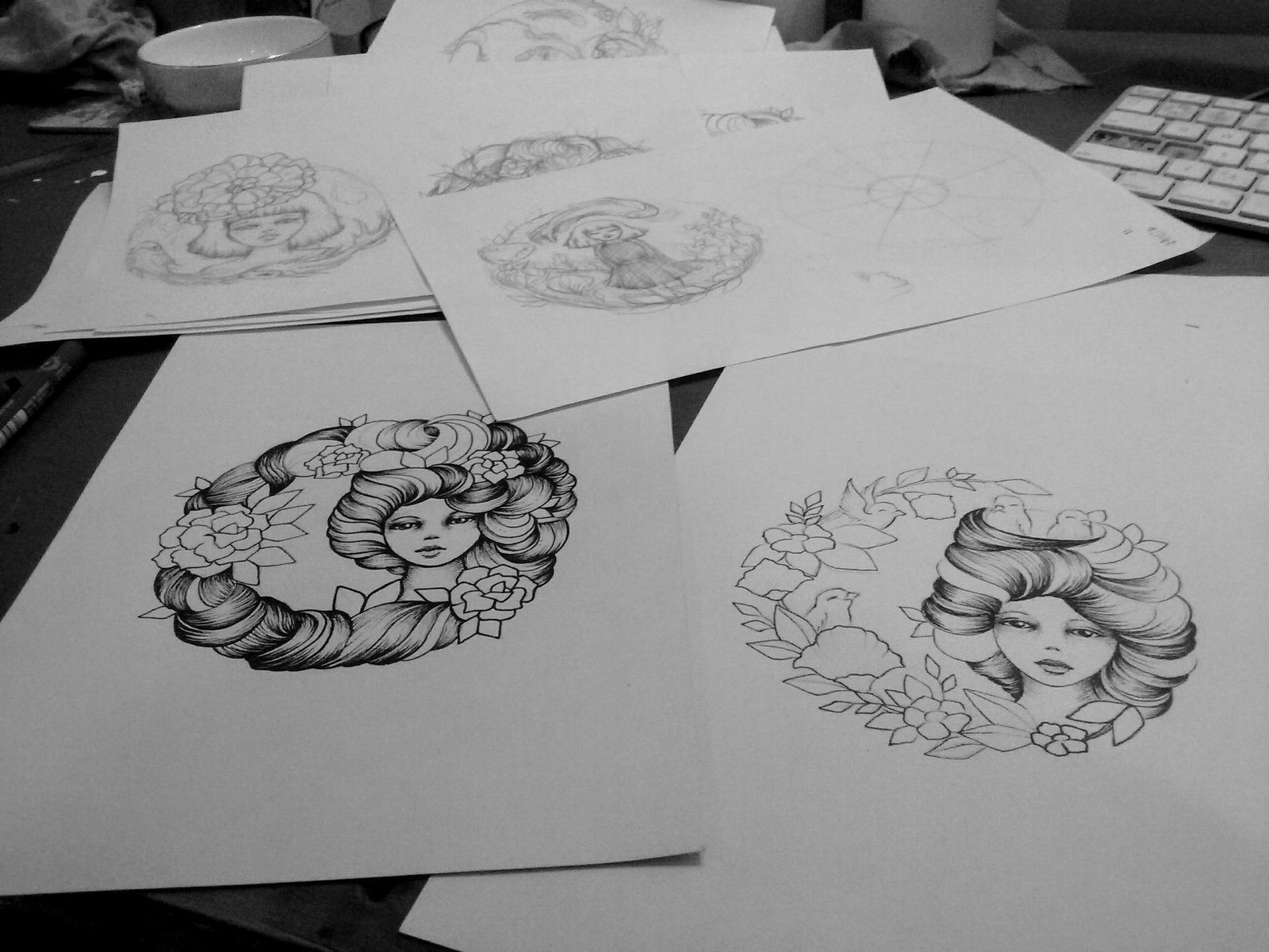 Drawing gypsy girl designs for ceramics! Sticking with a circular theme, Have come up with more like 2 pairs of girls, rather than a series of 4.