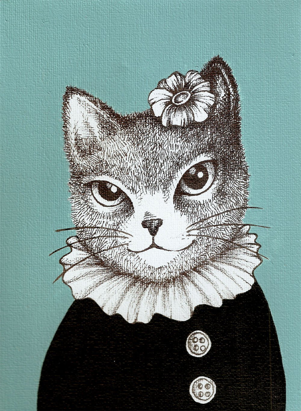Paint and Ink drawing on Canvas – Blue Cat