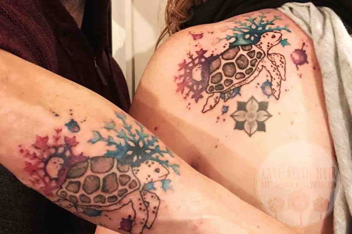 Snowflakes and Turtle Watercolour Style Tattoo