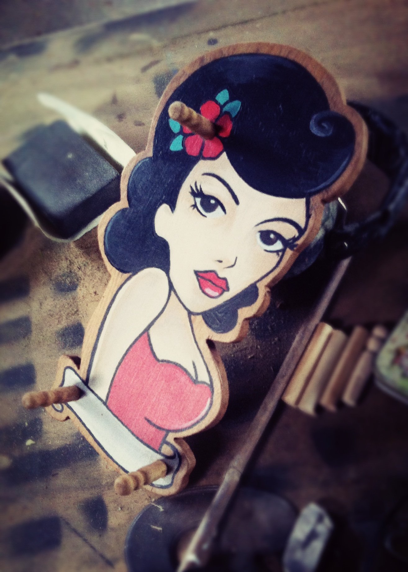 A wooden pin up girl made as a xmas present for my Brother and partner.