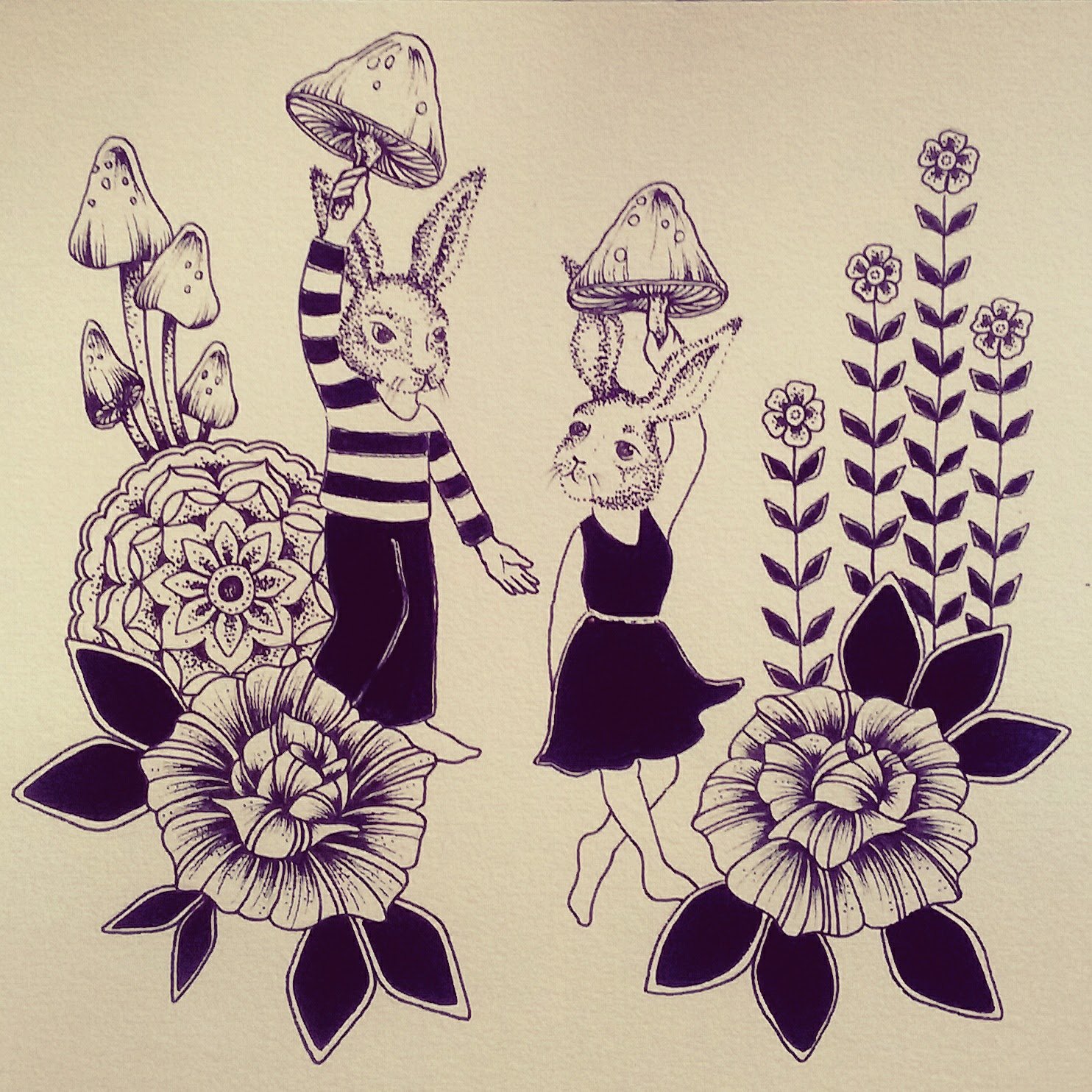 Rabbits, roses, mandalas and toadstools all feature in this cute design.